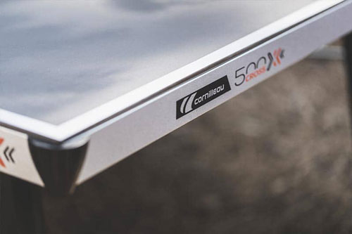 mm debelo igralno površino iz smolnatega laminata, miza za namizni tenis 500X omogoča igranje tudi najbolj zahtevnim igralcem, ki tako končno ne bodo več zapuščali igranja na zunanjih mizah.
